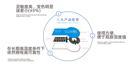 深圳聯(lián)合智能卡有限公司自主研發(fā)的濕度測量標簽又稱RFID濕度卡、防潮標簽,以無源NFC為基礎的、用來監(jiān)控物品相對濕度狀況的電子標簽。將標簽粘貼在需檢測的物品表面或放置在產(chǎn)品或包裝內(nèi),即可實時監(jiān)控濕度變化。