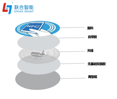 以下是普通RFID標(biāo)簽內(nèi)部結(jié)構(gòu)圖:離型紙+無基材雙面膠+天線+芯片+雙面膠+面料