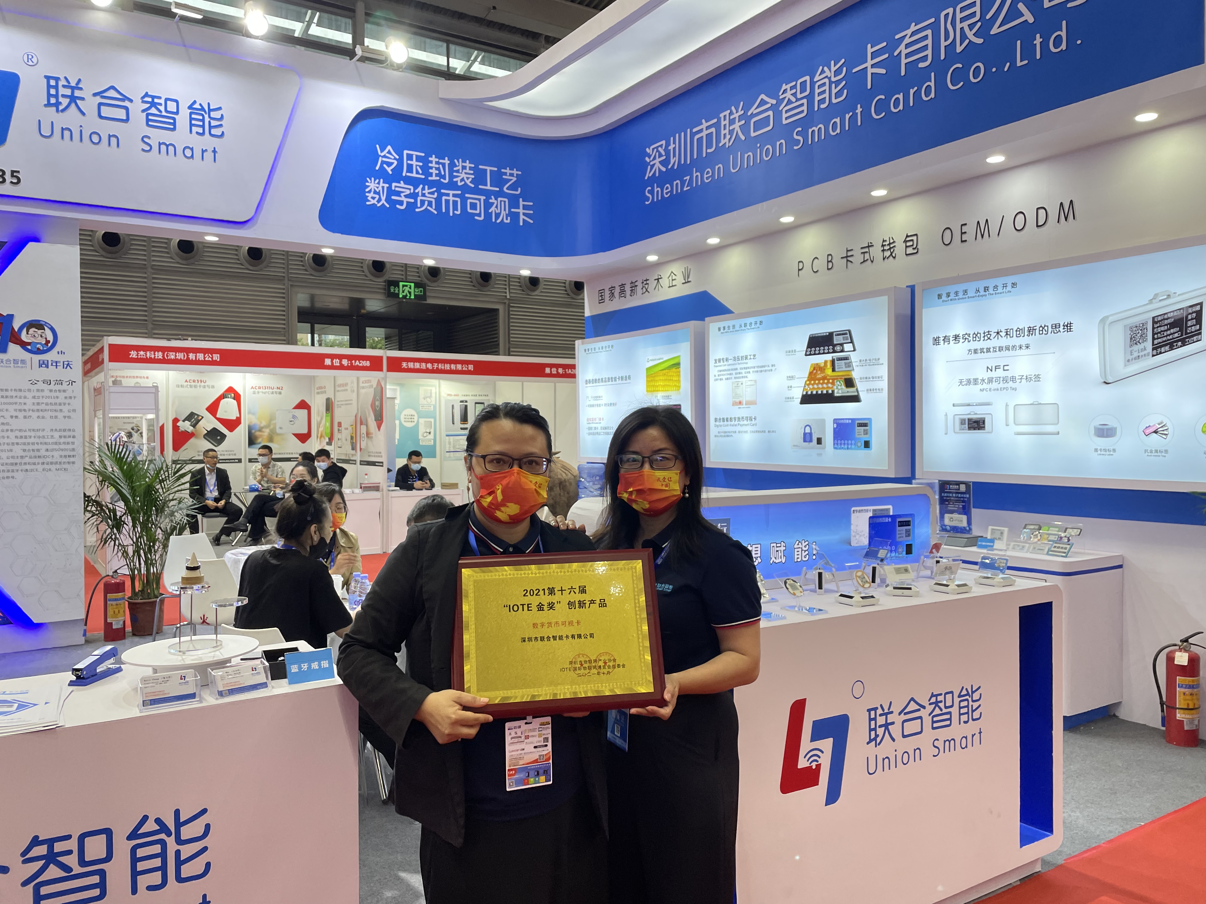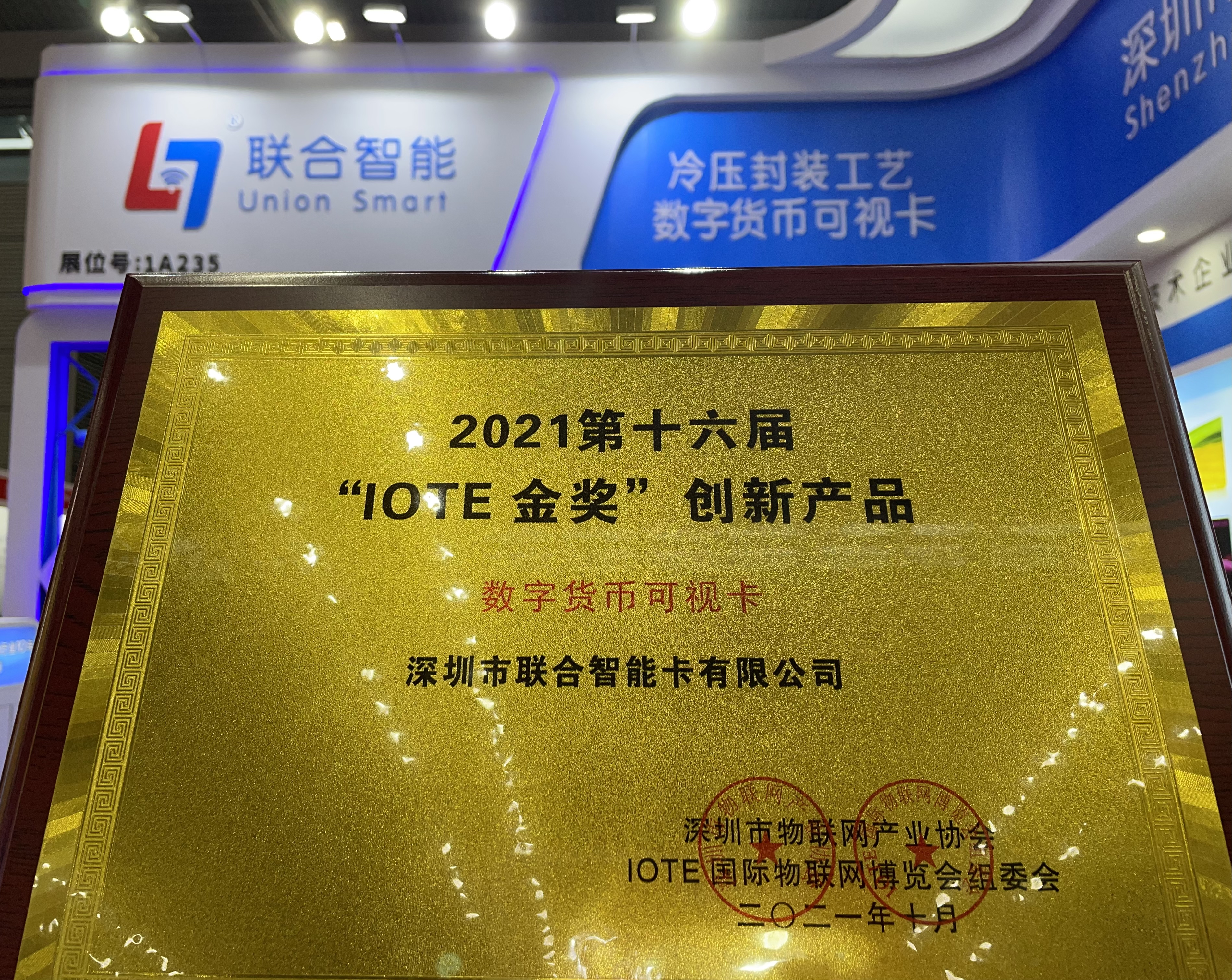10.24日,2020IOTE金獎(jiǎng)?lì)C獎(jiǎng)典禮隆重舉行,聯(lián)合智能憑借創(chuàng)新產(chǎn)品“數(shù)字貨幣可視卡”拿下IOTE金獎(jiǎng)。