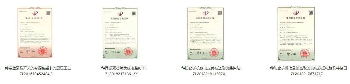 自2011年成立至今,“聯(lián)合智能”不斷獲得眾多客戶的認(rèn)可和好評,并先后獲得眾多國內(nèi)外著名商業(yè)機(jī)構(gòu)認(rèn)可,取得數(shù)字貨幣可視卡、智能屏蔽卡、CPU卡、NFC可視電子標(biāo)簽、RFID電子標(biāo)簽、有源藍(lán)牙卡冷壓工藝等2項(xiàng)發(fā)明專利和10項(xiàng)實(shí)用新型專利、1項(xiàng)國際PCT和22項(xiàng)軟件著作權(quán)。2015年,“聯(lián)合智能”通過ISO9001質(zhì)量體系認(rèn)證和ISO4001環(huán)境管理體系認(rèn)證。