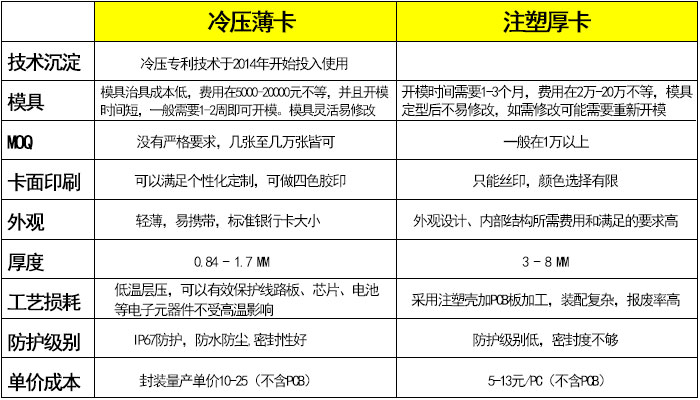 冷壓薄卡與注塑厚卡對(duì)比