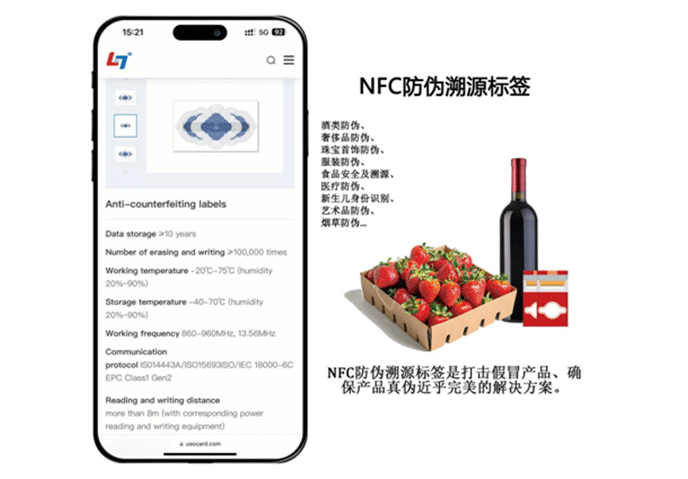 NFC防偽溯源標(biāo)簽是打擊假冒產(chǎn)品、確保產(chǎn)品真?zhèn)谓跬昝赖慕鉀Q方案。這些標(biāo)簽利用NFC技術(shù)在整個(gè)產(chǎn)品供應(yīng)鏈中提供實(shí)時(shí)的驗(yàn)證和溯源。只需用智能手機(jī)輕觸NFC標(biāo)簽,消費(fèi)者和企業(yè)就可以實(shí)時(shí)驗(yàn)證產(chǎn)品的真?zhèn)?,確保產(chǎn)品是正品。這些標(biāo)簽還可以對(duì)產(chǎn)品進(jìn)行無(wú)縫跟蹤和追蹤,公司能夠監(jiān)控其供應(yīng)鏈并檢測(cè)任何未經(jīng)授權(quán)的制造商經(jīng)銷(xiāo)商生產(chǎn)或售賣(mài)。借助NFC防偽溯源標(biāo)簽,企業(yè)可以保護(hù)品牌聲譽(yù)、維護(hù)消費(fèi)者信任并保持市場(chǎng)競(jìng)爭(zhēng)優(yōu)勢(shì)。
