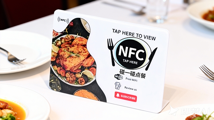 NFC智能點餐牌,解鎖便捷用餐新體驗!無需掃碼,只需將支持NFC功能的手機輕輕一碰,即可快速跳轉(zhuǎn)至點餐頁面,菜品瀏覽、下單支付一步到位,告別信號差、掃碼慢的煩惱。牌面可定制印刷餐廳特色、菜品推薦等內(nèi)容,兼具實用點餐與品牌展示雙重屬性,適用于餐廳、奶茶店、咖啡店等各類餐飲場景,助力提升門店運營效率,優(yōu)化顧客用餐體驗。