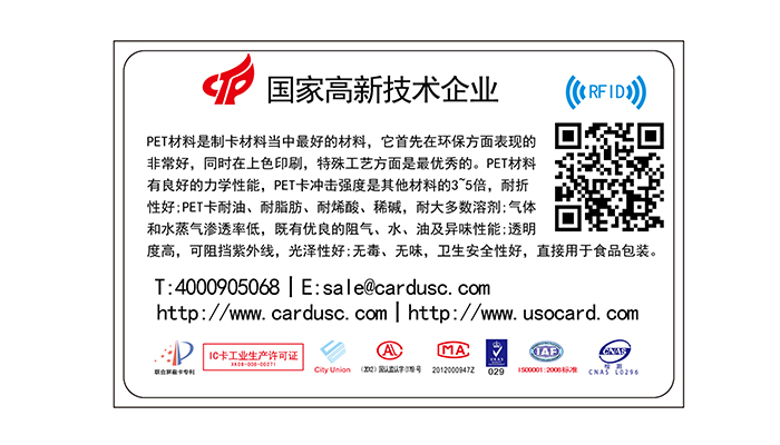 環(huán)保PET智能卡|耐高溫可用于食品包裝