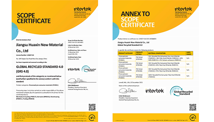 聯(lián)合智能再生RPVC卡材料已獲得全球循環(huán)GRS認(rèn)證。